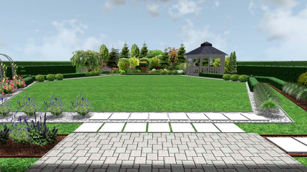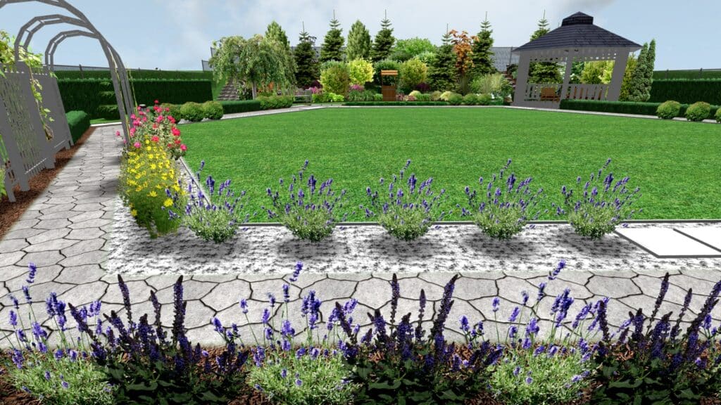 Obdobně se mohou nejdříve rozhodnout pro nenáročnou travnatou pěšinu v šestiúhelníku, a pokud budou chtít, mohou trávu nahradit a chodník vyplnit pevným materiálem – krásný a trvalý je přírodní kámen. A buď později, nebo hned zkraje, se mohou nadchnout levandulí, případně šalvějí a štěrkové lemy chodníku jimi téměř po celém obvodu vyplnit →