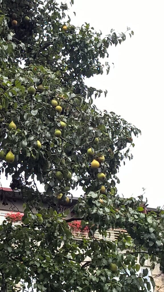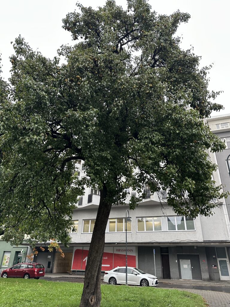 Dlouhou dobu nám vrtalo hlavou, co je to za výborné hrušky, které každé září plodí strom uprostřed města. Hrušky mají náramnou chuť, ale bohužel většina jich padá z výšky a pod stromem v trávě i na chodníku si na nich pochutnávají hlavně včely, vosy, motýli…